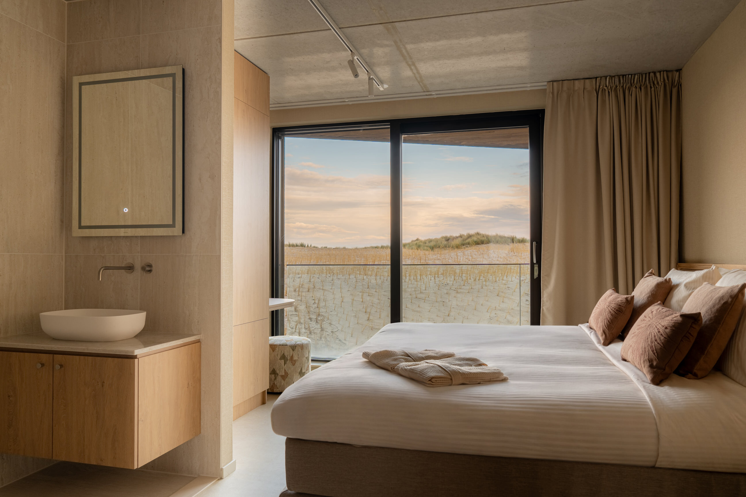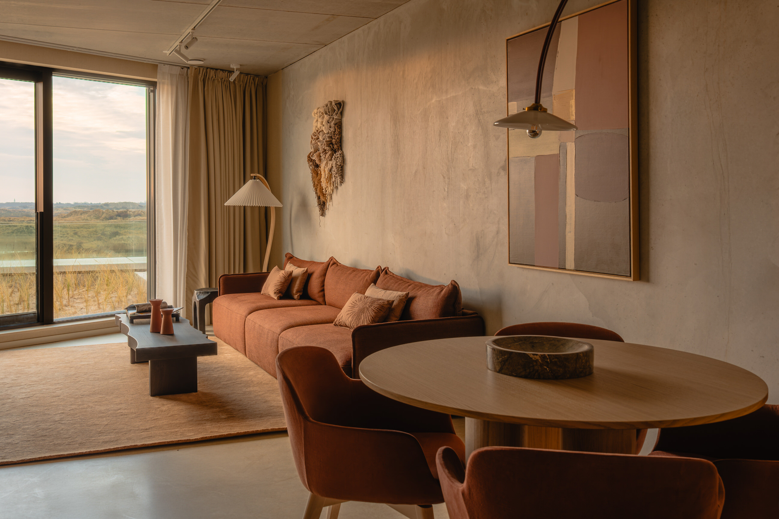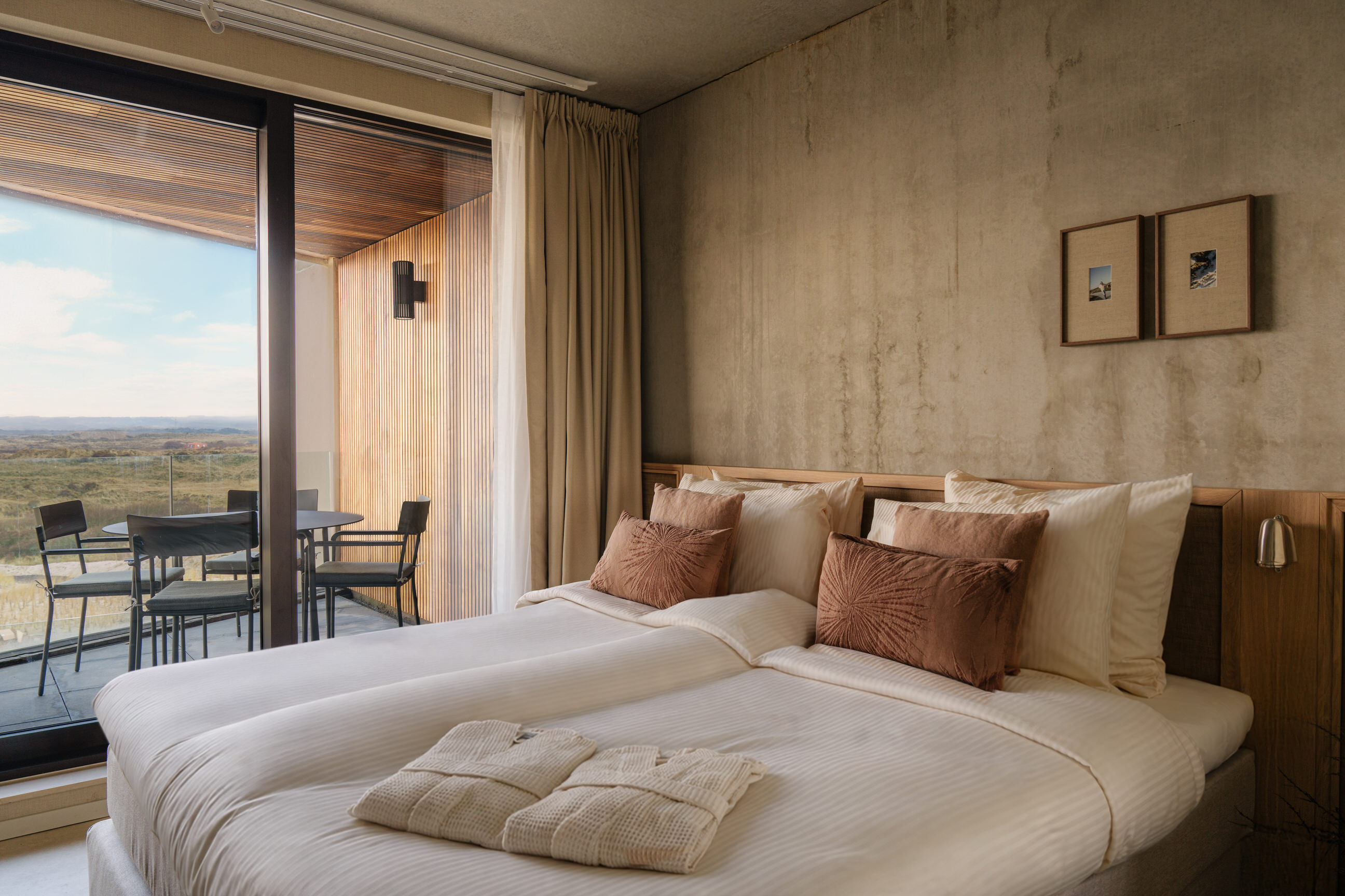 The apartments on the first floor mainly offer views of the forest and dunes. Some of these rooms have their own balcony with seating.