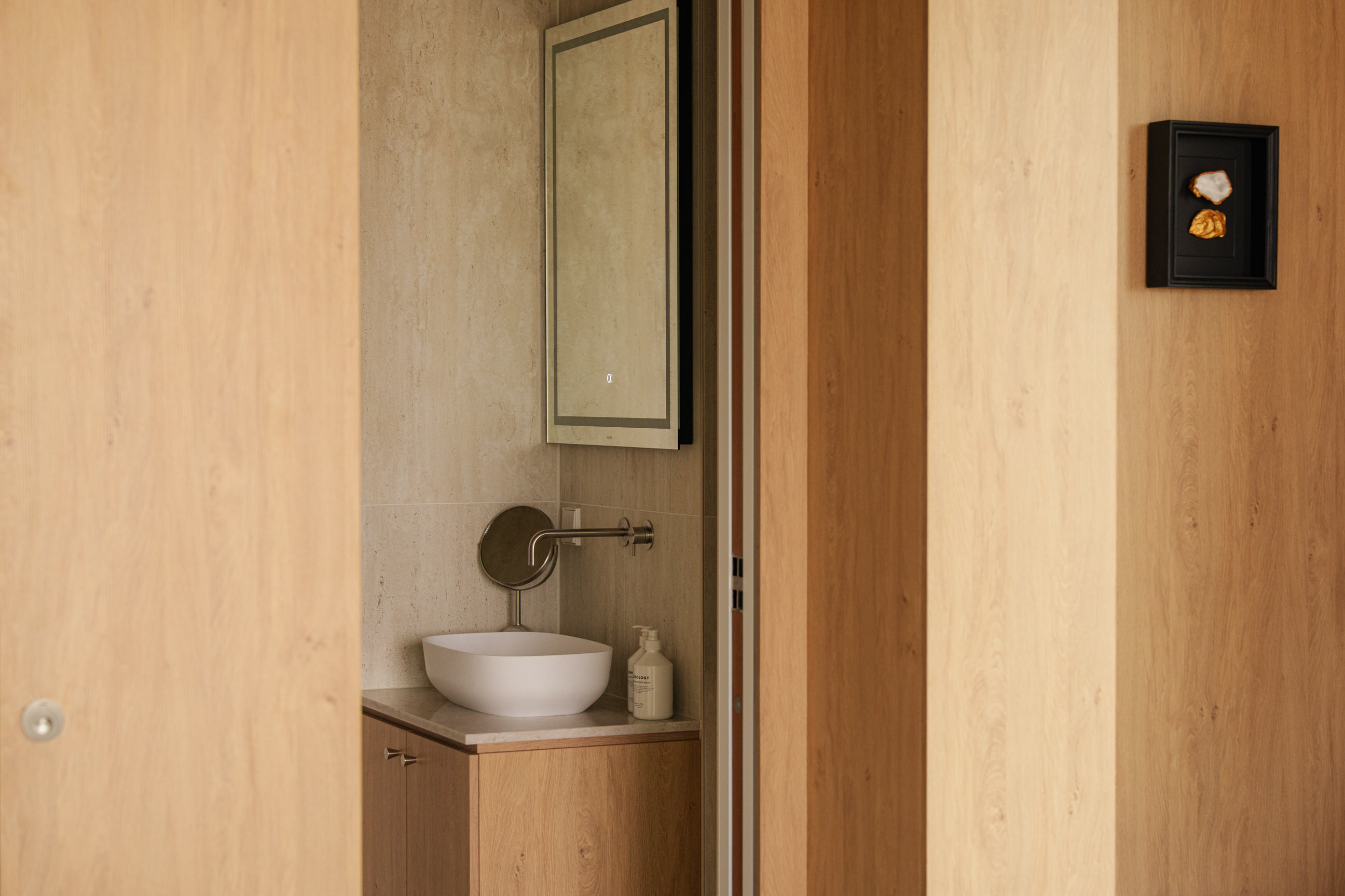 This family room consists of two hotel rooms connected by a corridor. When the rooms are booked as a family room, the corridor can be used exclusively by the group.